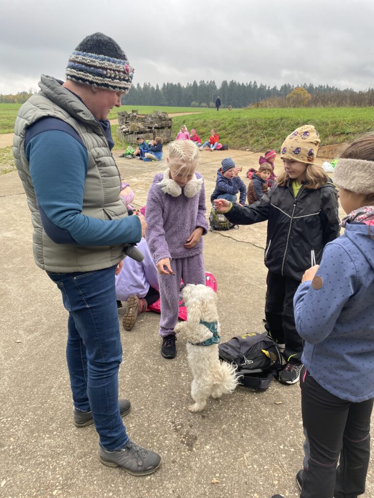 Bei herrlichem Herbstwetter machte sich die Klasse 3/4a gemeinsam mit Michaela Schuster und ihrem treuen Hund Emmi auf den Weg nach Bernricht. Gut gelaunt und voller Energie wanderte die Gruppe durch die herbstlich gefärbte Landschaft.
