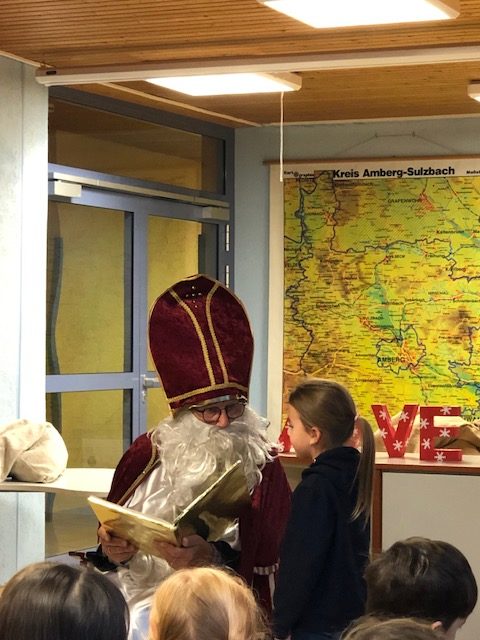 Auch dieses Jahr besuchte der Nikolaus die Grundschule Edelsfeld. In seinem goldenen Buch stand viel Gutes über die Schüler. Besonders über die Kinder der ersten Klasse wusste er viel zu berichten.